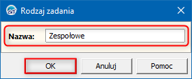 3. Wprowadzić nazwę nowego rodzaju działania i zapisać przyciskiem OK.