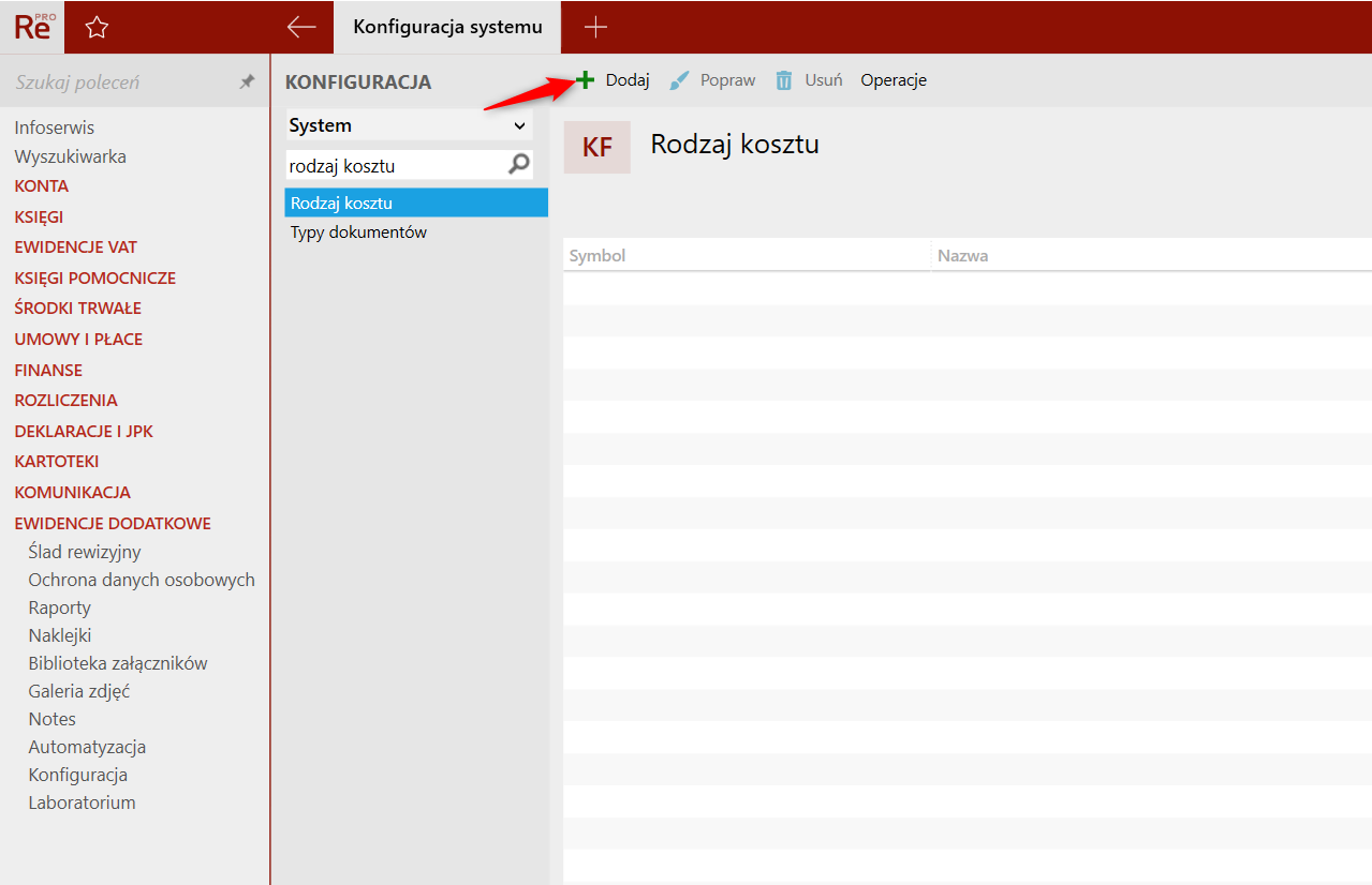 5. Uzupełnić Symbol i Nazwę. Zapisać zmiany.