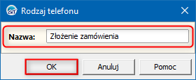 3. Wprowadzić nazwę nowego rodzaju działania i zapisać przyciskiem OK.