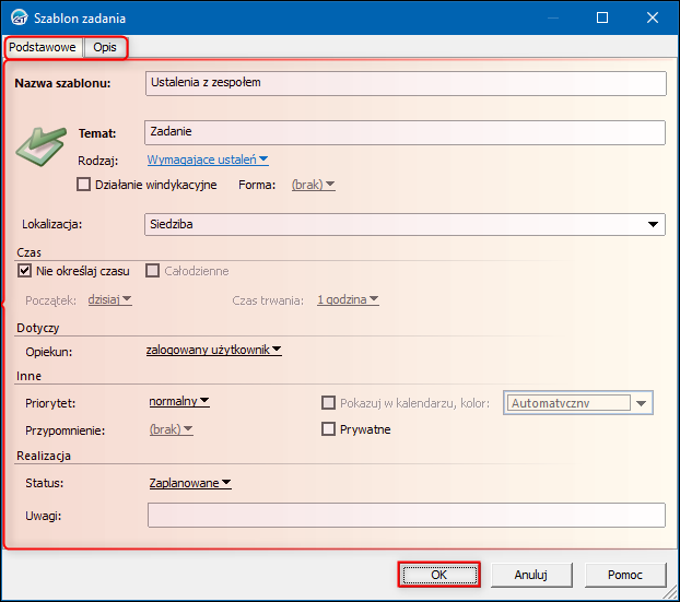 3. W oknie, które się wyświetli dokonać modyfikacji szablonu. Zmiany zapisać przyciskiem OK.