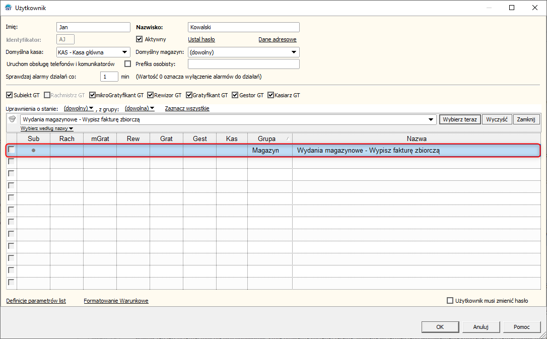 Subiekt GT – Jak zablokować użytkownikowi możliwość realizacji dokumentów WZ fakturą zbiorczą?