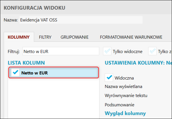 Rewizor nexo – Jak do widoku Ewidencji VAT OSS dodać kolumnę Netto w EUR?