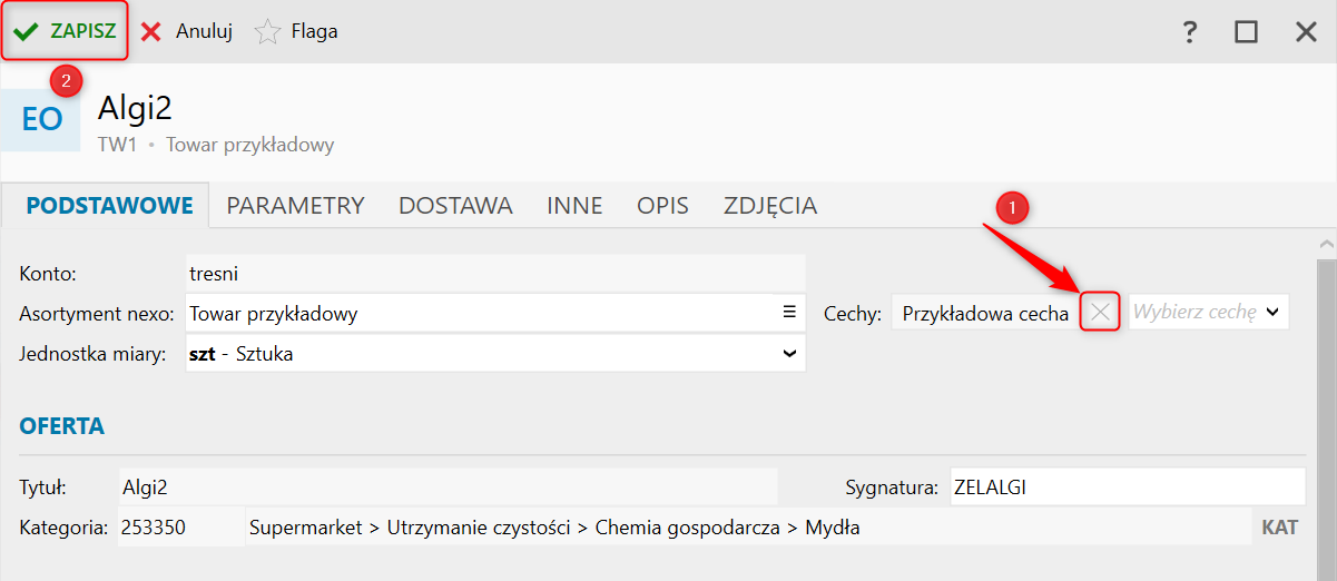Sello NX pozwala na przypisywanie cech ofertom internetowym. Aby odebrać ofercie przypisaną cechę, należy: