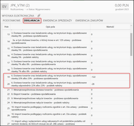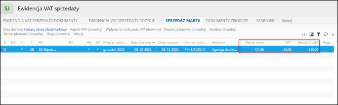 Jeśli w zapisie będącym korektą wykazana jest ujemna marża jego wartość zostanie uwzględniona w części deklaracyjnej pliku JPK V7, a nie wyłącznie w ewidencyjnej jak było we wcześniejszych wersjach programu.