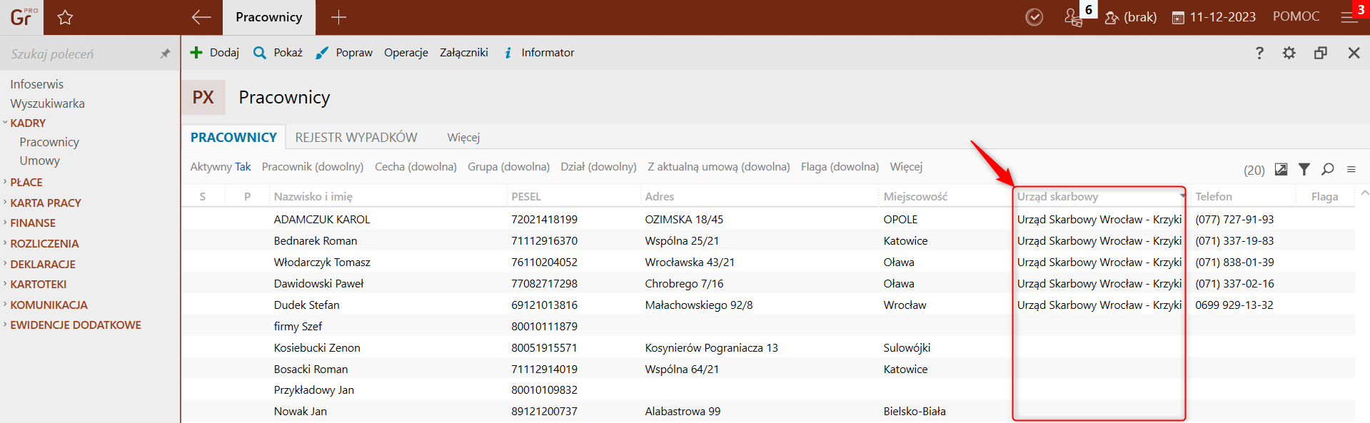 Gratyfikant nexo – Jak do widoku Pracownicy dodać informację o Urzędzie Skarbowym pracownika?