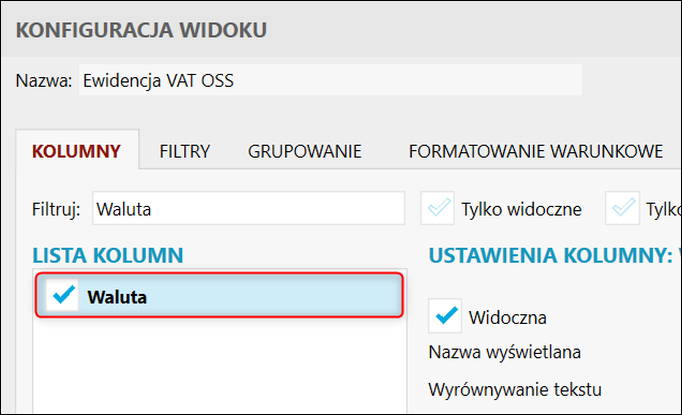 Rewizor nexo – Jak do widoku Ewidencji VAT OSS dodać kolumnę Waluta?
