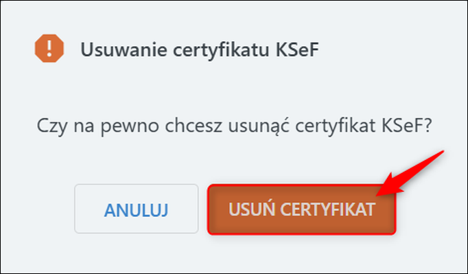 5. Potwierdzić operację przyciskiem Usuń certyfikat.