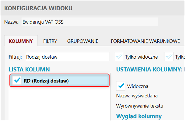 Rewizor nexo – Jak do widoku Ewidencji VAT OSS dodać kolumnę Rodzaj dostaw?