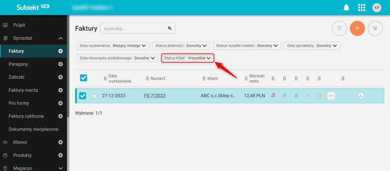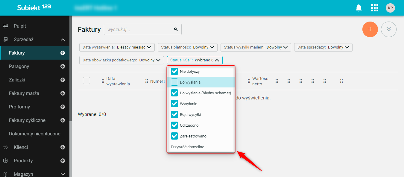 Subiekt 123 – Jak na liście dokumentów uwzględnić jedynie pozycje o wybranym Statusie KSeF?