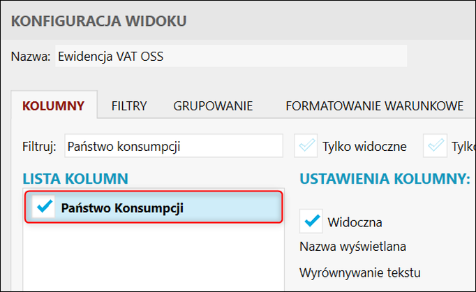 Rewizor nexo – Jak do widoku Ewidencji VAT OSS dodać kolumnę Państwo konsumpcji?