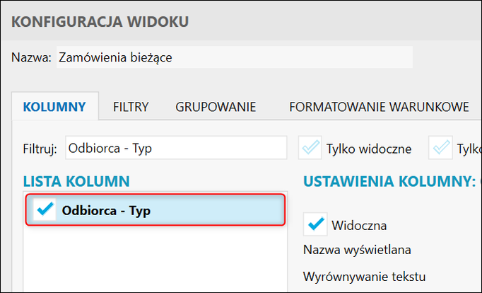 Subiekt nexo – Jak do widoku zamówień dodać kolumnę Odbiorca – Typ?