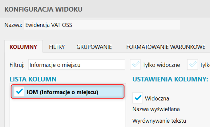 Rewizor nexo – Jak do widoku Ewidencji VAT OSS dodać kolumnę Informacje o miejscu?