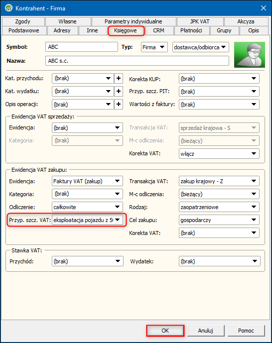 Rachmistrz i Rewizor GT – Jak ustawić kontrahentowi domyślny przypadek szczególny VAT zapisów ewidencji VAT zakupu?