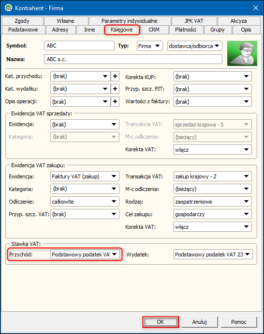 Rachmistrz GT – Jak ustawić kontrahentowi domyślną stawkę VAT przychodu KPiR?