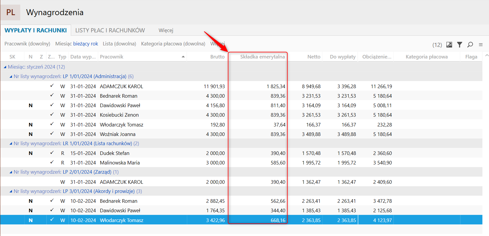 Gratyfikant nexo – Jak do widoku Wypłat i rachunków dodać informację o wysokości składki emerytalnej?