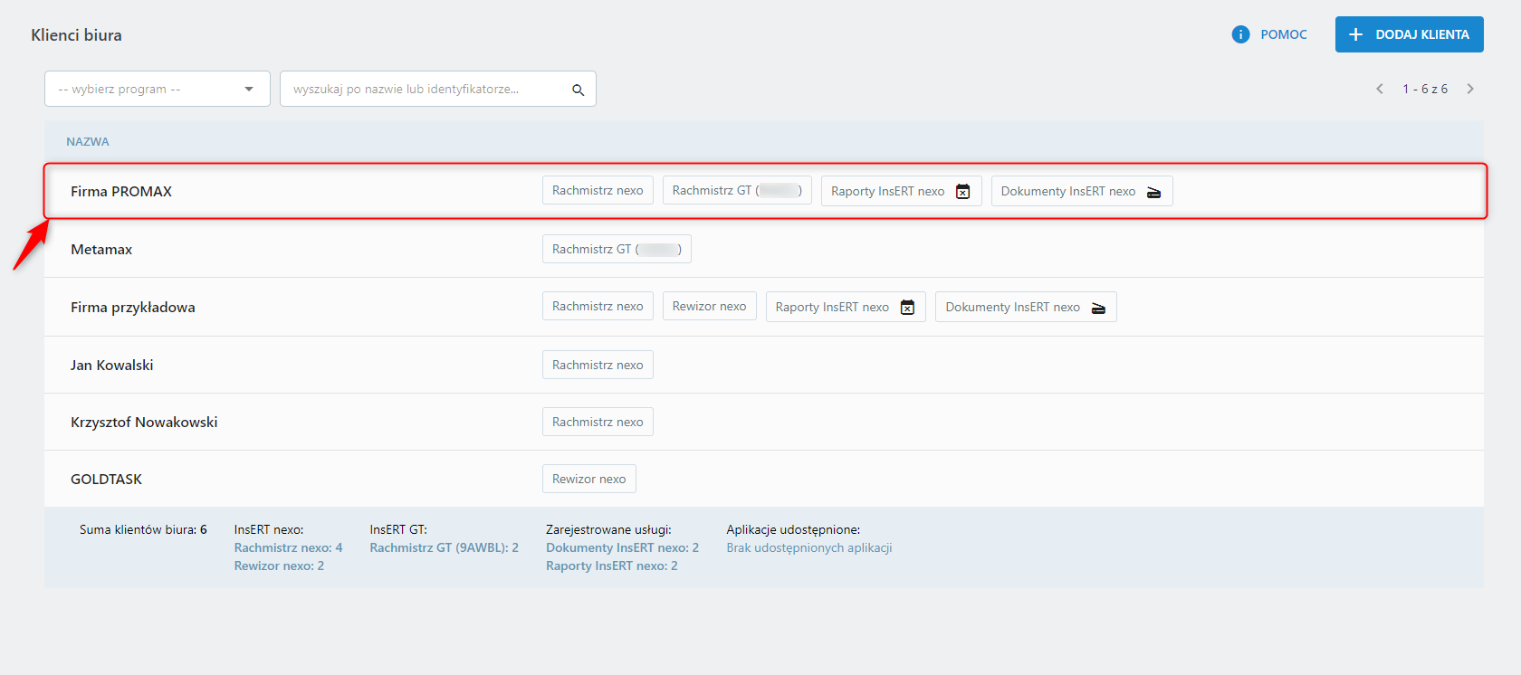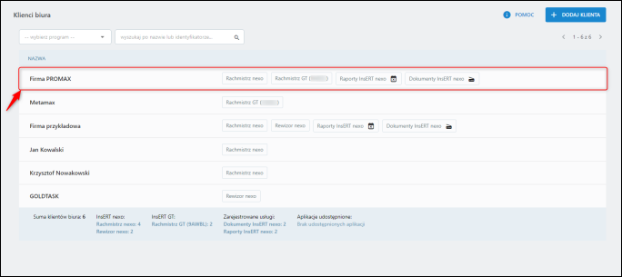 3. Wybrać z listy klienta biura.