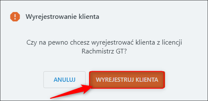 5. Potwierdzić operacje wybierając opcje Wyrejestruj klienta.