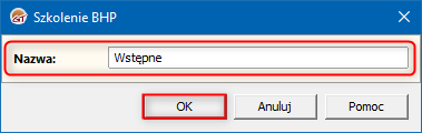3. Wprowadzić nową Nazwę szkolenia. Zmiany zapisać przyciskiem OK.
