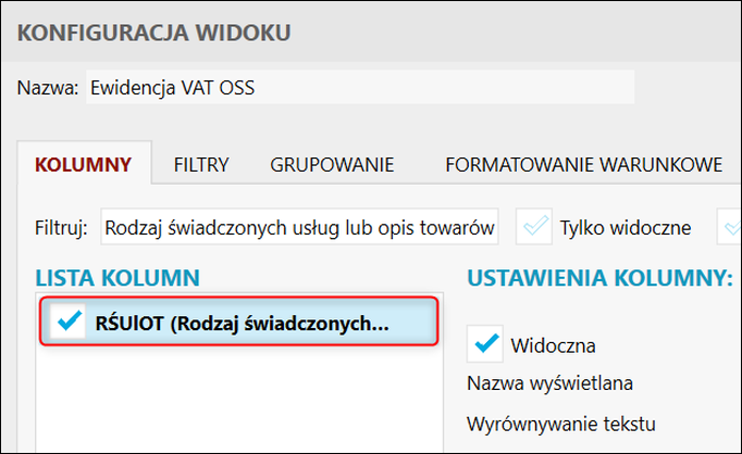 Rewizor nexo – Jak do widoku Ewidencji VAT OSS dodać kolumnę Rodzaj świadczonych usług lub opis towarów?