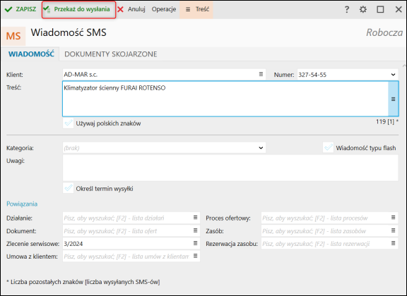 Gestor nexo – Jak wysłać wiadomość SMS do gwaranta urządzenia?