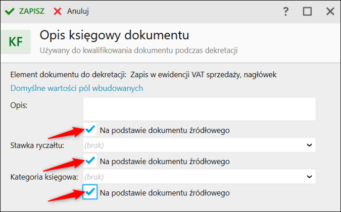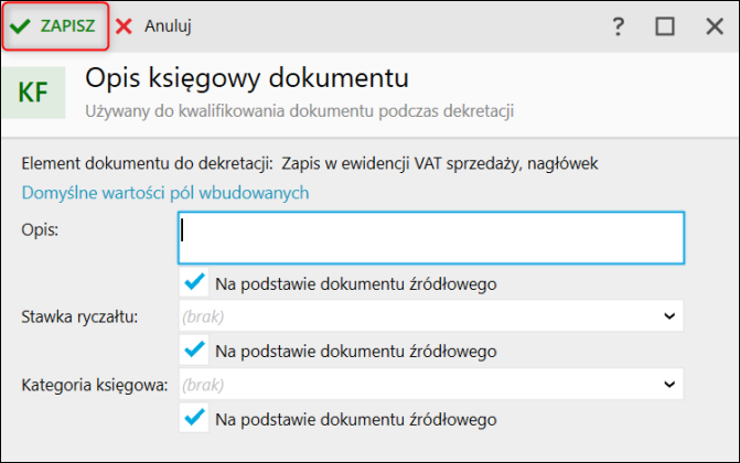 Rachmistrz nexo i Rewizor nexo – Jak ustawić domyślny opis księgowy zapisu Ewidencji VAT na podstawie dokumentu źródłowego?