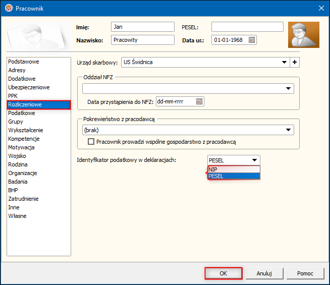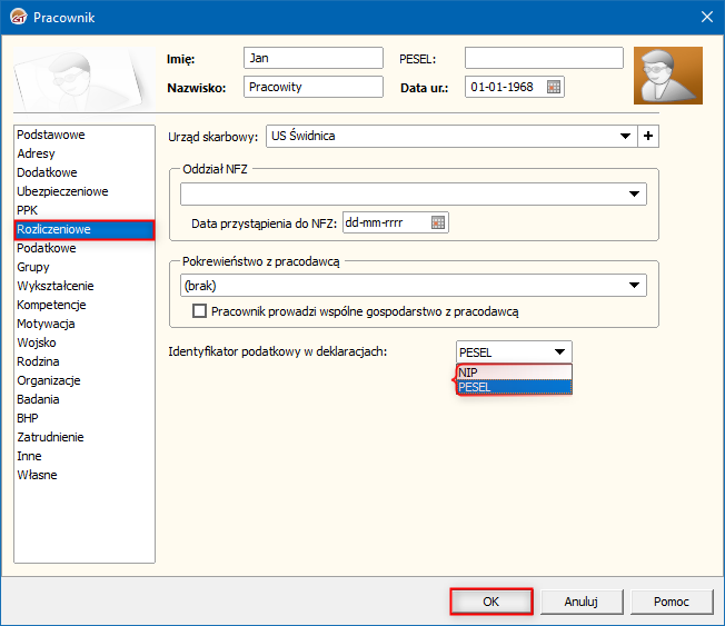 ​W celu wskazania w programie Gratyfikant GT pracownikowi identyfikatora podatkowego (NIP lub PESEL) w deklaracjach należy: