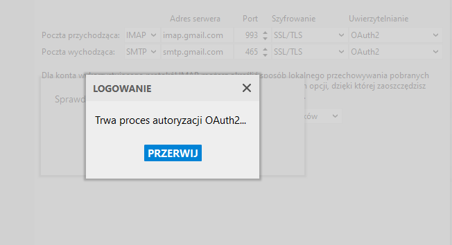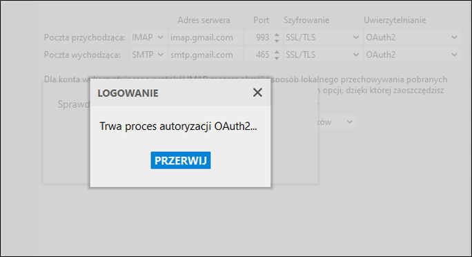 Po wybraniu sposobu uwierzytelniania nastąpi proces autoryzacji danych.