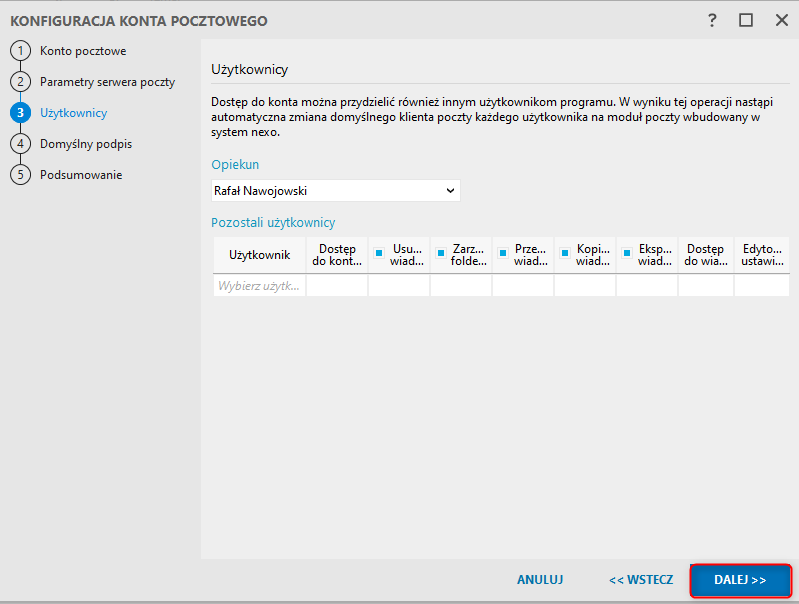 4. W kolejnym kroku należy zdefiniować, którzy użytkownicy będą mogli korzystać z poczty.