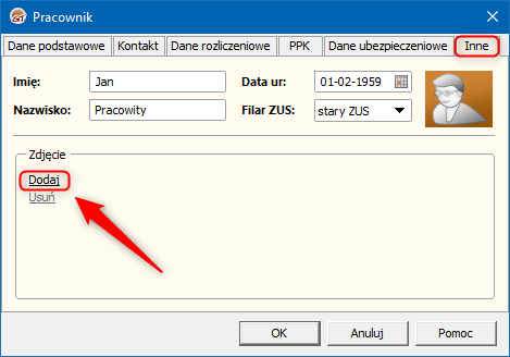 W celu dodania zdjęcia pracownika w programie mikroGratyfikant GT należy: