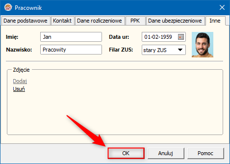 4. Zmiany w kartotece zapisać przyciskiem OK.
