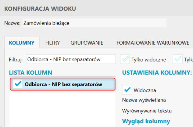 Subiekt nexo – Jak do widoku zamówień dodać kolumnę Odbiorca – NIP?