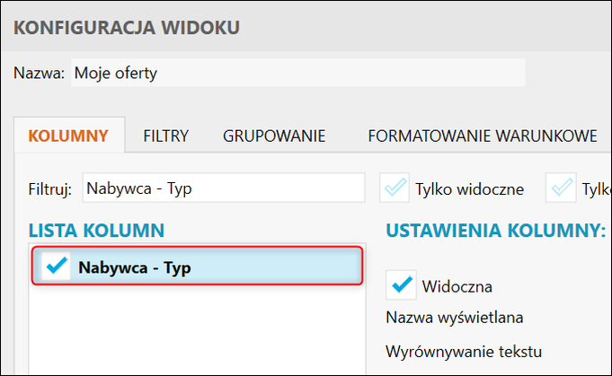 Gestor nexo – Jak do widoku Ofert dodać kolumnę Nabywca – Typ?