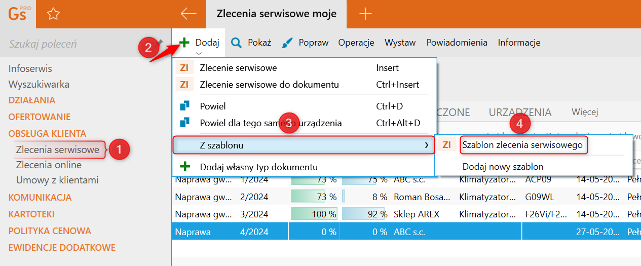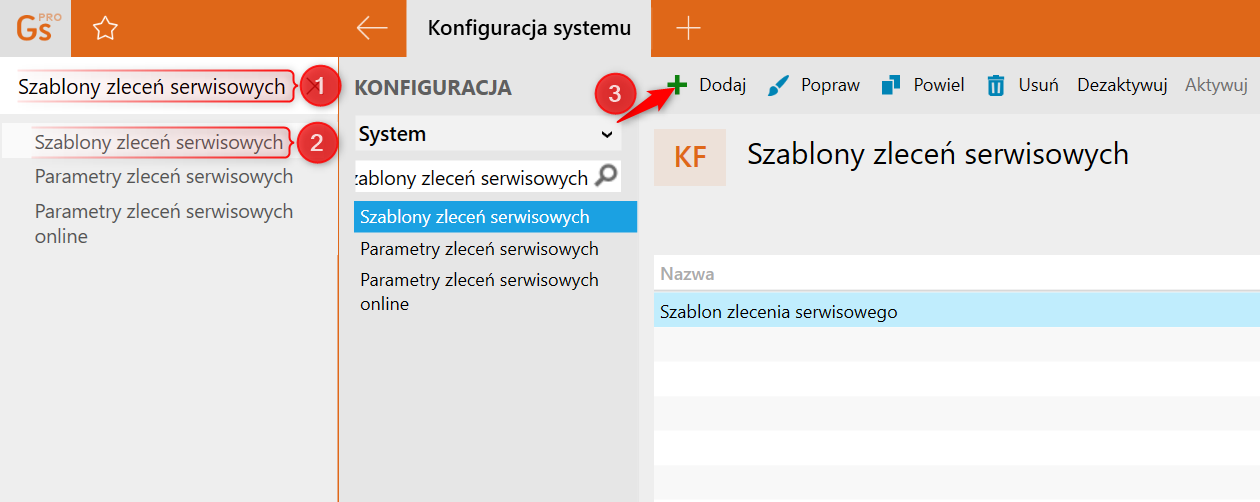 Aby dodać Szablon zlecenia serwisowego, należy: