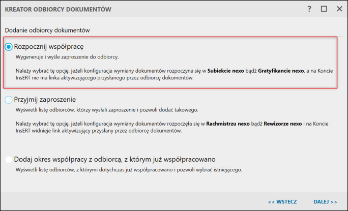 3. W kolejnym kroku wybrać Rozpocznij współpracę i przejść Dalej.