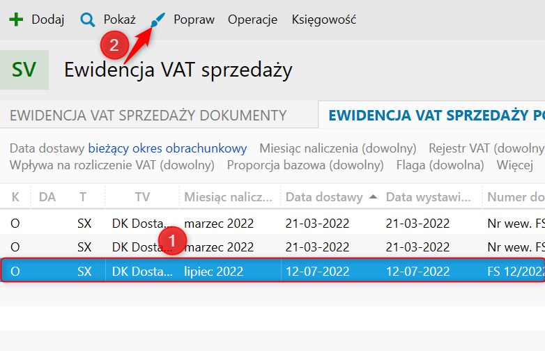 4. Dokumenty sprzedaży pojawią się na liście. Aby wprowadzić zmiany w zawartość dokumentu, należy kliknąć górne menu Popraw.