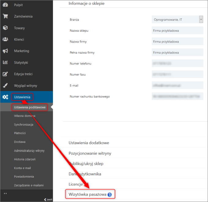 Widoczność witryny na portalu pasaz24.pl należy ustawić w Panelu Administracyjnego vendero, w module Ustawienia - Ustawienia podstawowe - Wizytówka pasażowa.