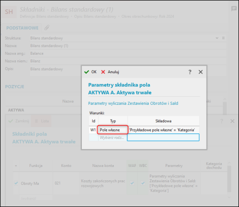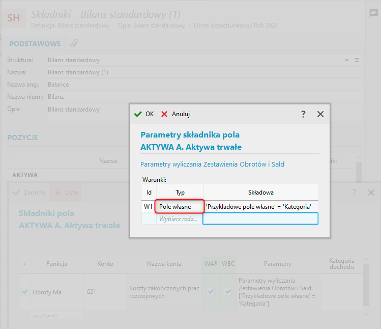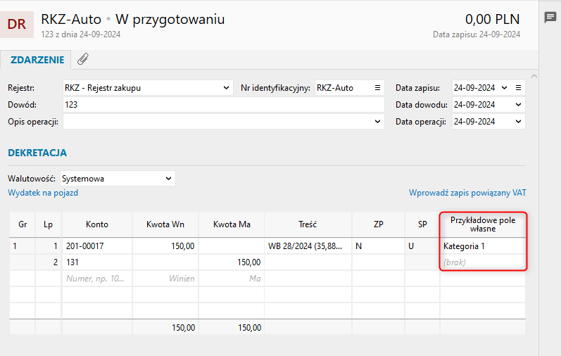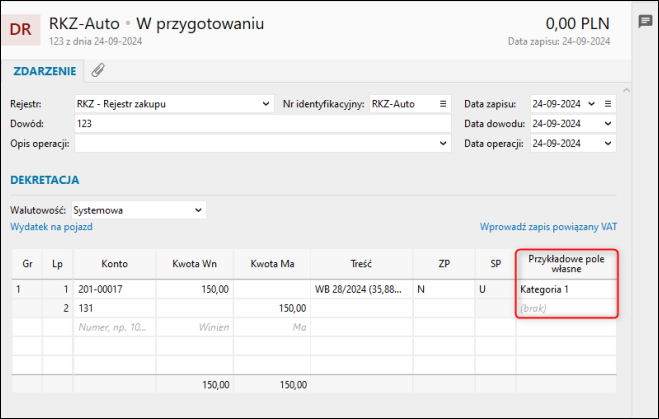 Obsługa pól własnych na pozycjach została również dodana na dekretach i w definicjach sprawozdań finansowych.