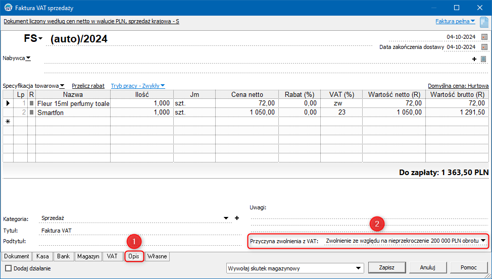 Subiekt GT – Jak na fakturze wstawić przyczynę zwolnienia z VAT?