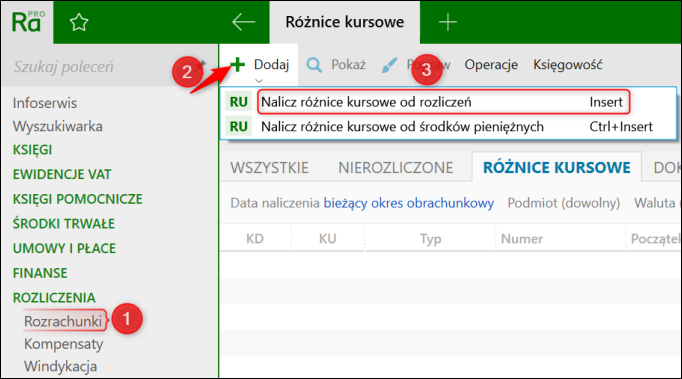 Aby naliczyć różnice kursowe od rozliczeń, należy: