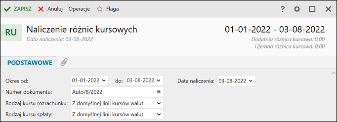 3. Data naliczenia określa faktyczne naliczenia różnic, a tabela Rodzaj kursu rozrachunku i spłaty wskazuje programowi, skąd ma pobrać kurs.