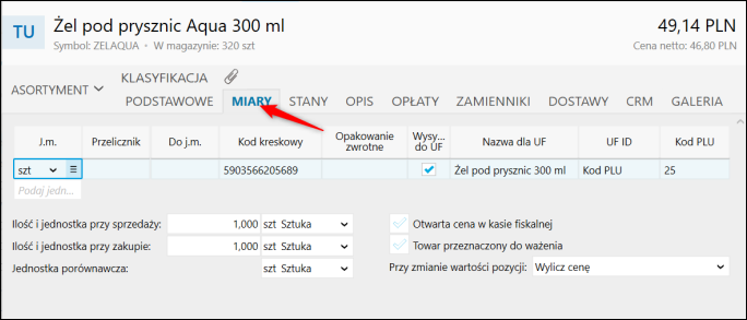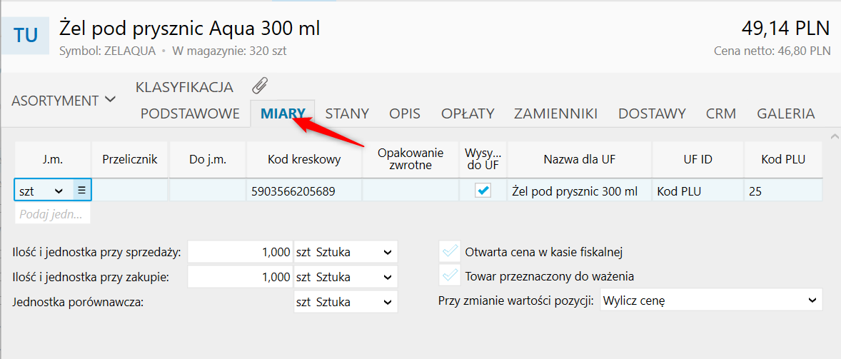 Subiekt nexo – Jak wprowadzić gabaryty towaru?