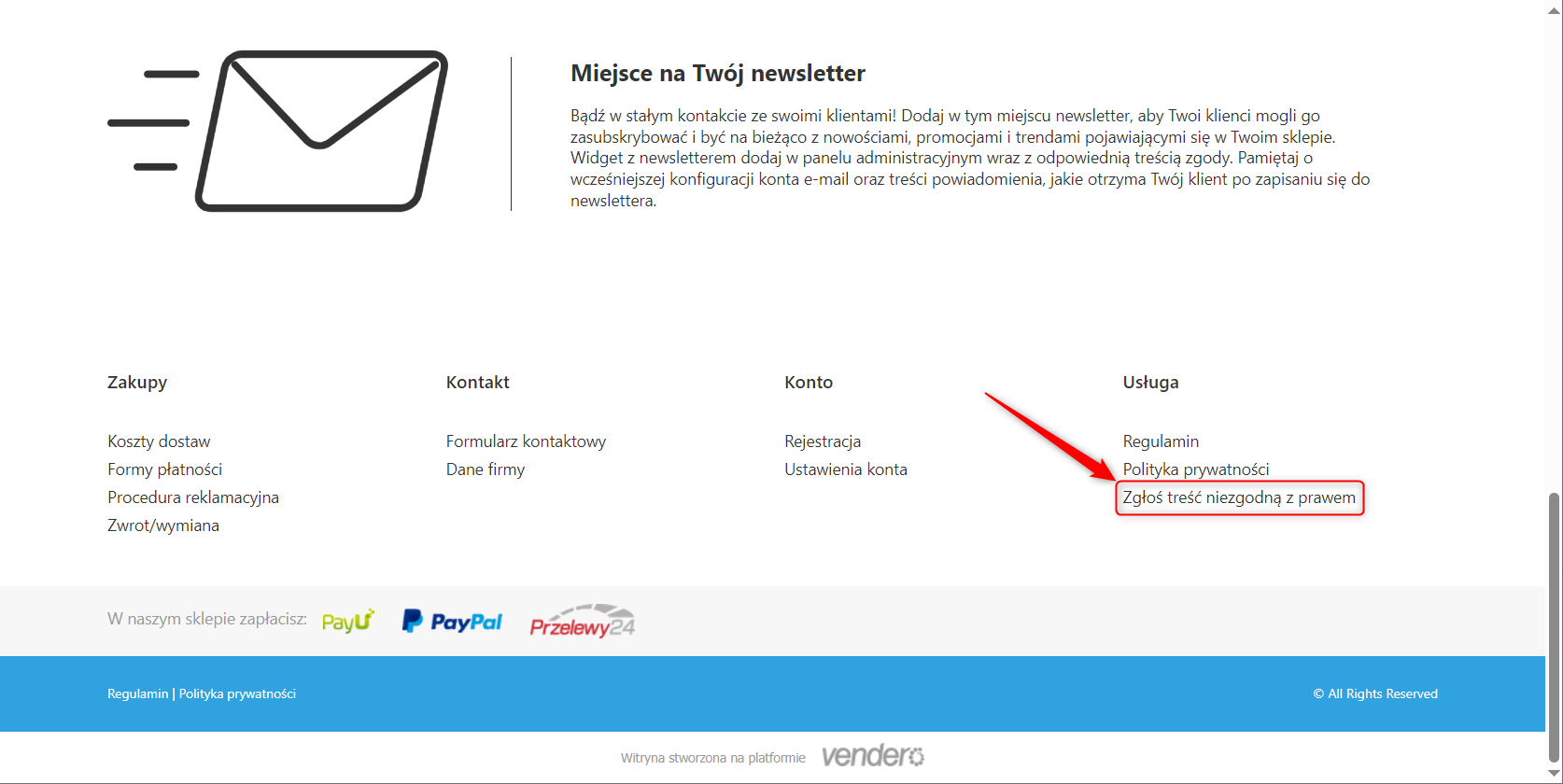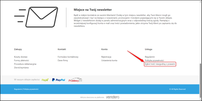 Jak dodać odnośnik do formularza DSA na stronę sklepu w vendero?