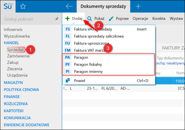 Paragon fiskalny – służy do wprowadzenia ręcznej sprzedaży z kasy fiskalnej