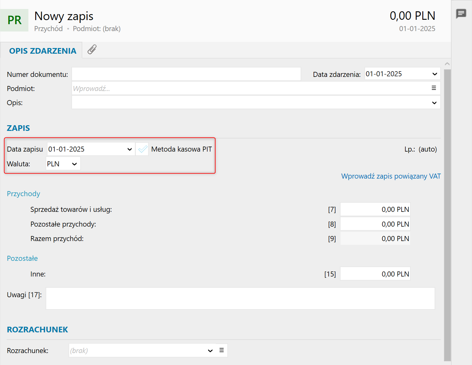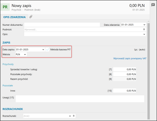 W wersji 53.0.0 w Rachmistrzu nexo wprowadzono możliwość korzystania z Metody kasowej PIT dla zapisów w KPiR.