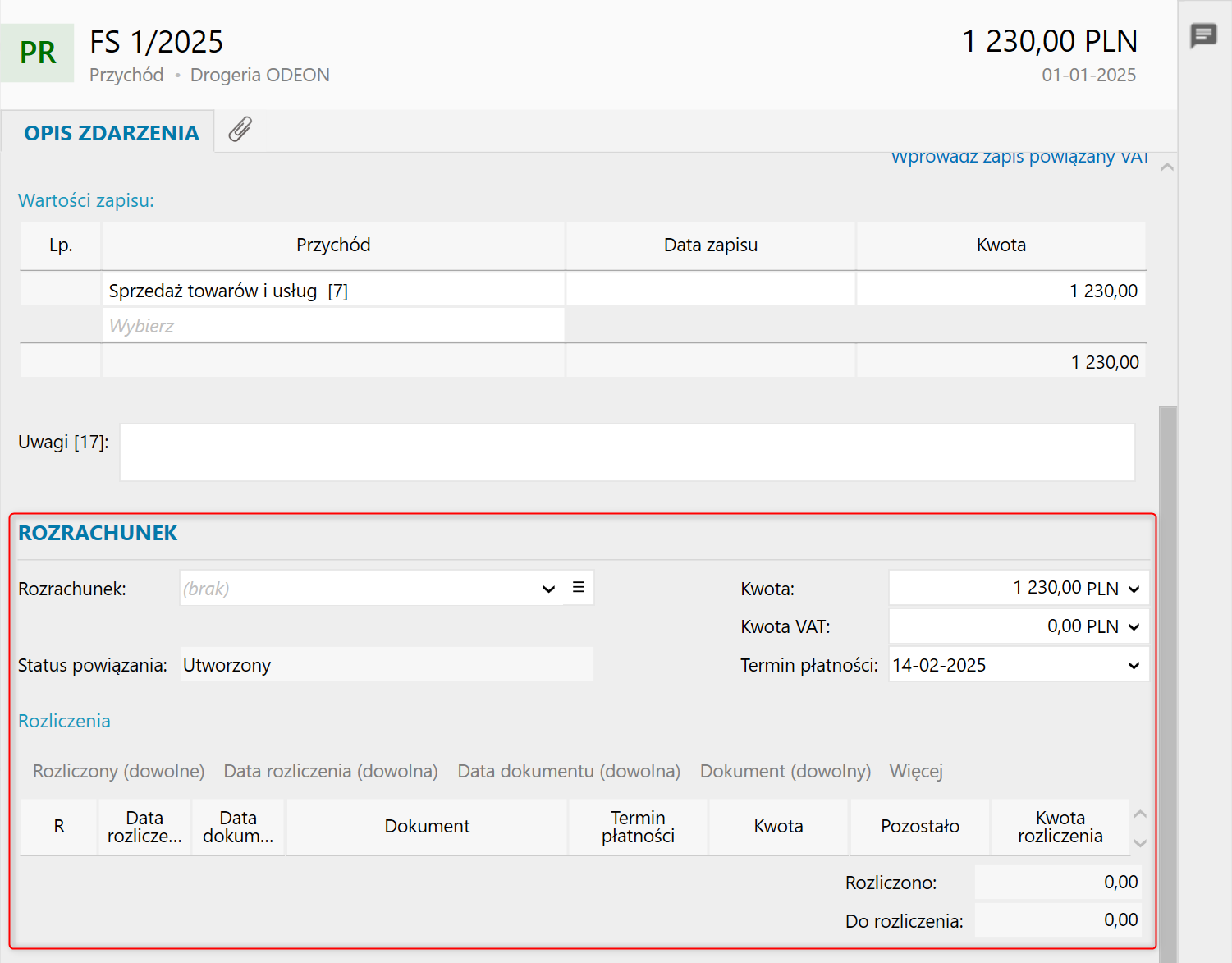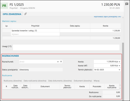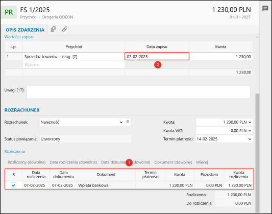 4. Po rozliczeniu powiązanego dokumentu automatycznie uzupełniona zostanie Data zapisu, według której zapis zostanie uwzględniony w deklaracjach.
