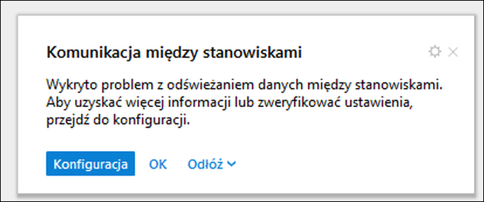 Uwaga! Wyłączenie parametru nie oznacza całkowitej utraty komunikacji między stanowiskami. Dane będą nadal aktualizowane, ale według domyślnie zaprogramowanego interwału czasowego, po otwarciu np. danego widoku, lub po jego ręcznym odświeżeniu.
