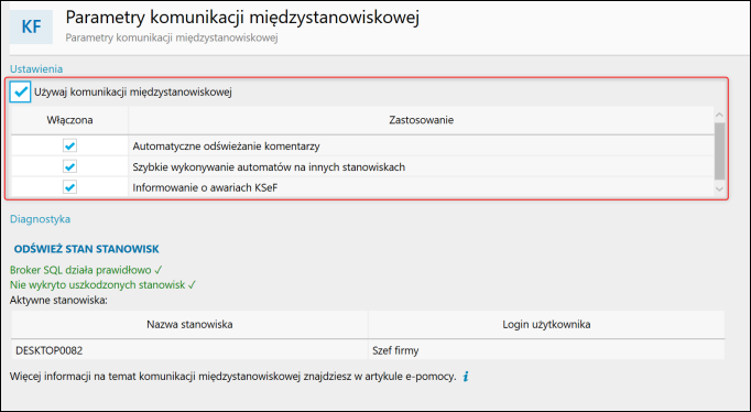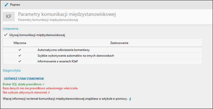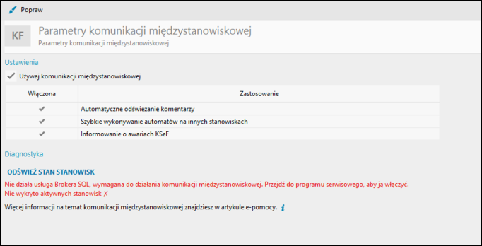 Wyłącz komunikację międzystanowiskową – dezaktywuje mechanizmy usprawnionej komunikacji (dane będą nadal aktualizowane, ale według domyślnie zaprogramowanego interwału czasowego),