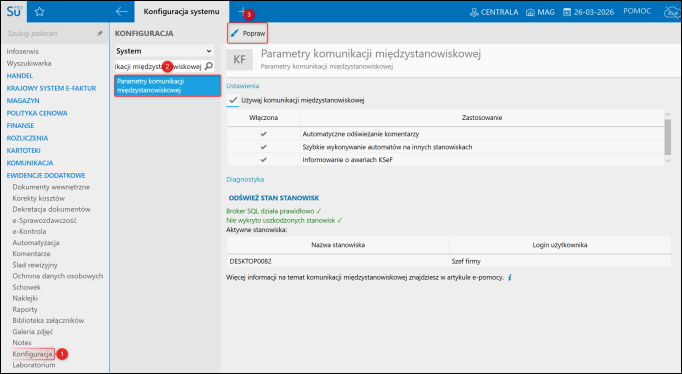 W programie dodano Parametry komunikacji międzystanowiskowej. Są one dostępne z poziomu modułu Konfiguracja.