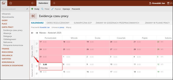 3. Liczba przepracowanych godzin będzie widoczna w Ewidencji czasu pracy.