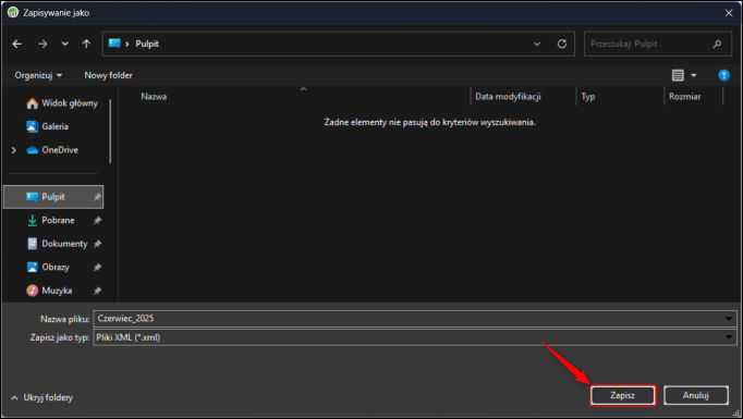 2. Wskazać lokalizację, w której powinien zostać zapisany plik i zatwierdzić przyciskiem Zapisz.